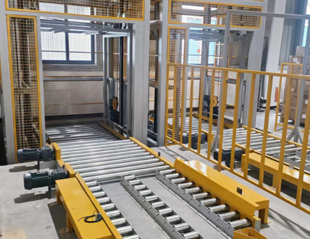 • 升降轿厢:承载货物平台,可配滚筒线、链条线、皮带线,与前后输送线自动对接。